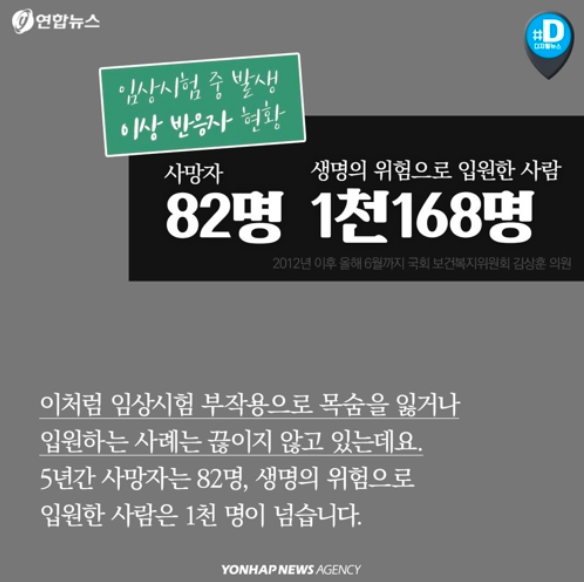 82명 죽고, 1천여명 입원…5년간 임상시험 피해자들